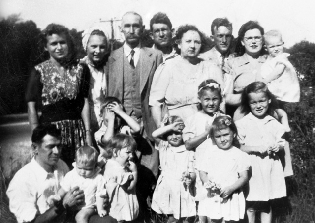 Front row: Allen Emanuel JONES and David Allen JONES on his leg, Sylvia BURTON, Otho BURTON Jr. (with hands on face), Nancy BURTON, Sally BURTON, Judith Ann JONES, Iva Virginia "Jenny" BURTON.